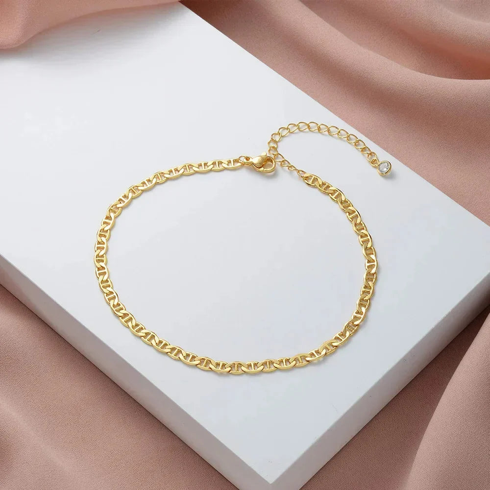 This gold-plated stainless steel anklet resists water damage during beach days and pool parties.