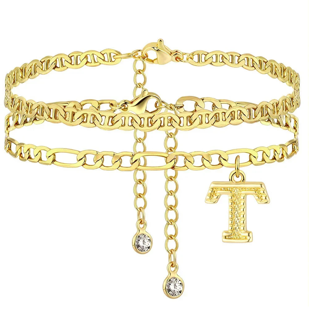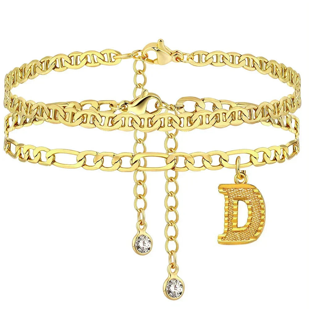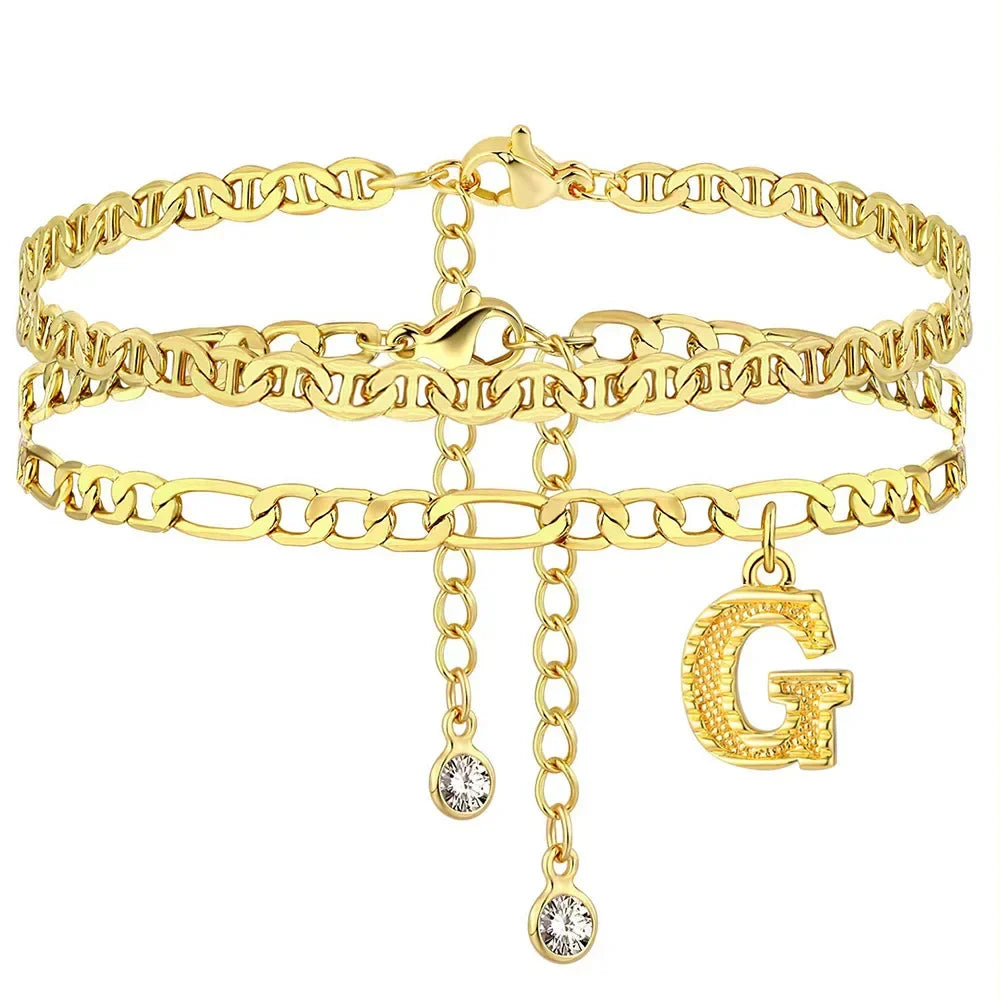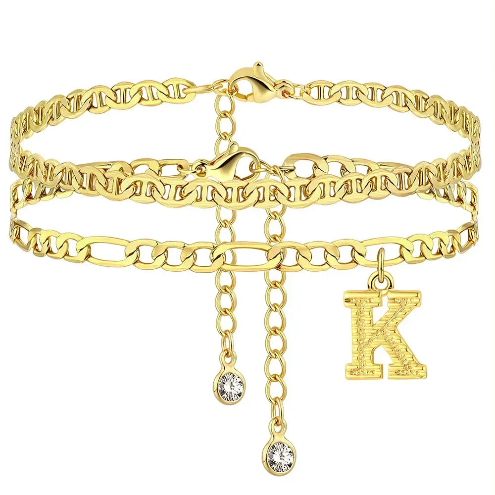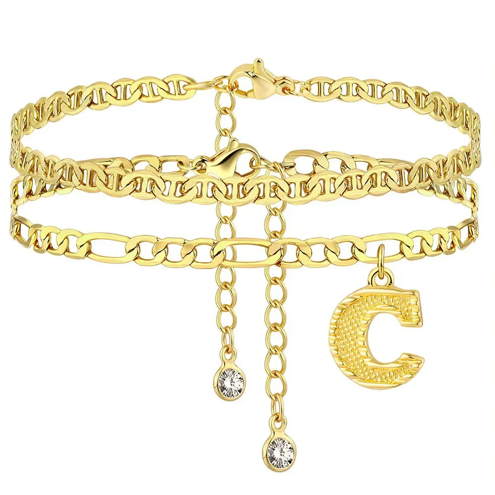 This gold ankle bracelet features your chosen initial, making it uniquely yours.