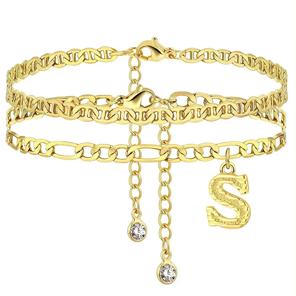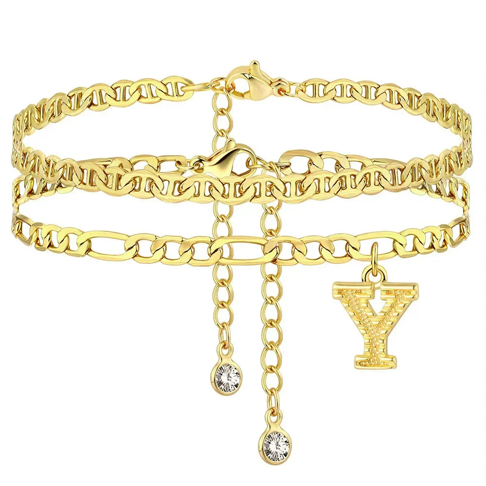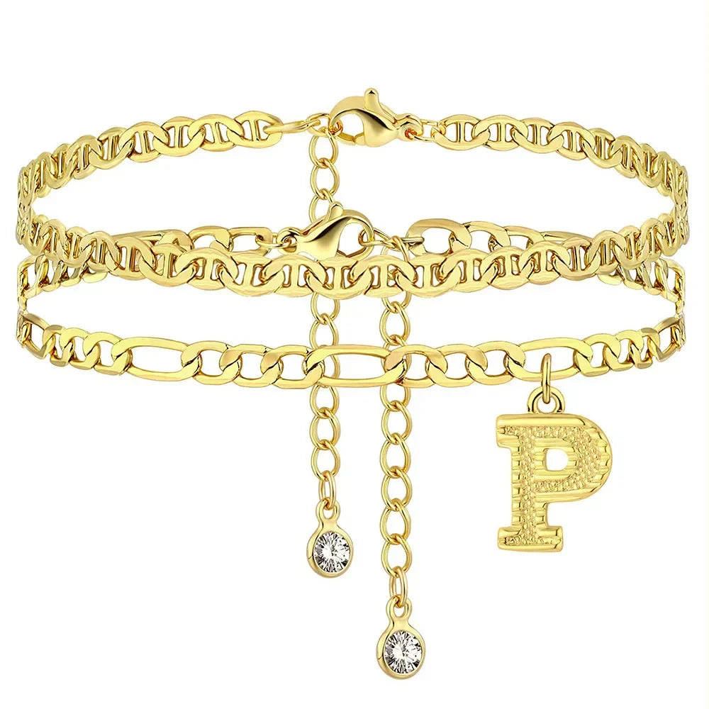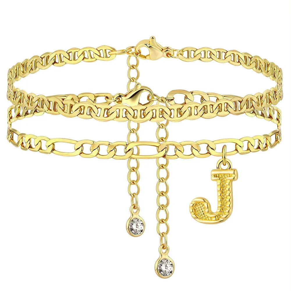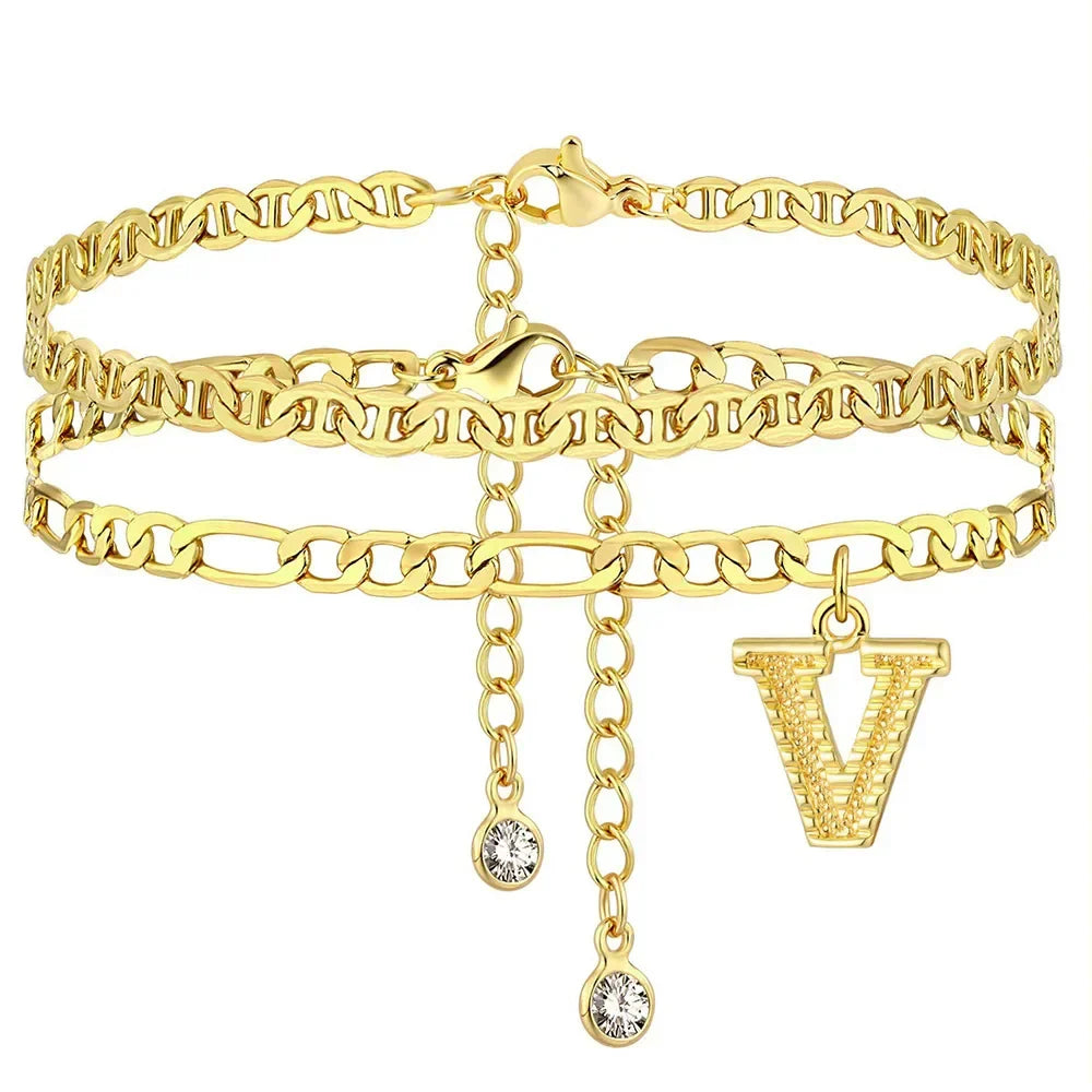 This gold ankle bracelet features your chosen initial, making it uniquely yours.