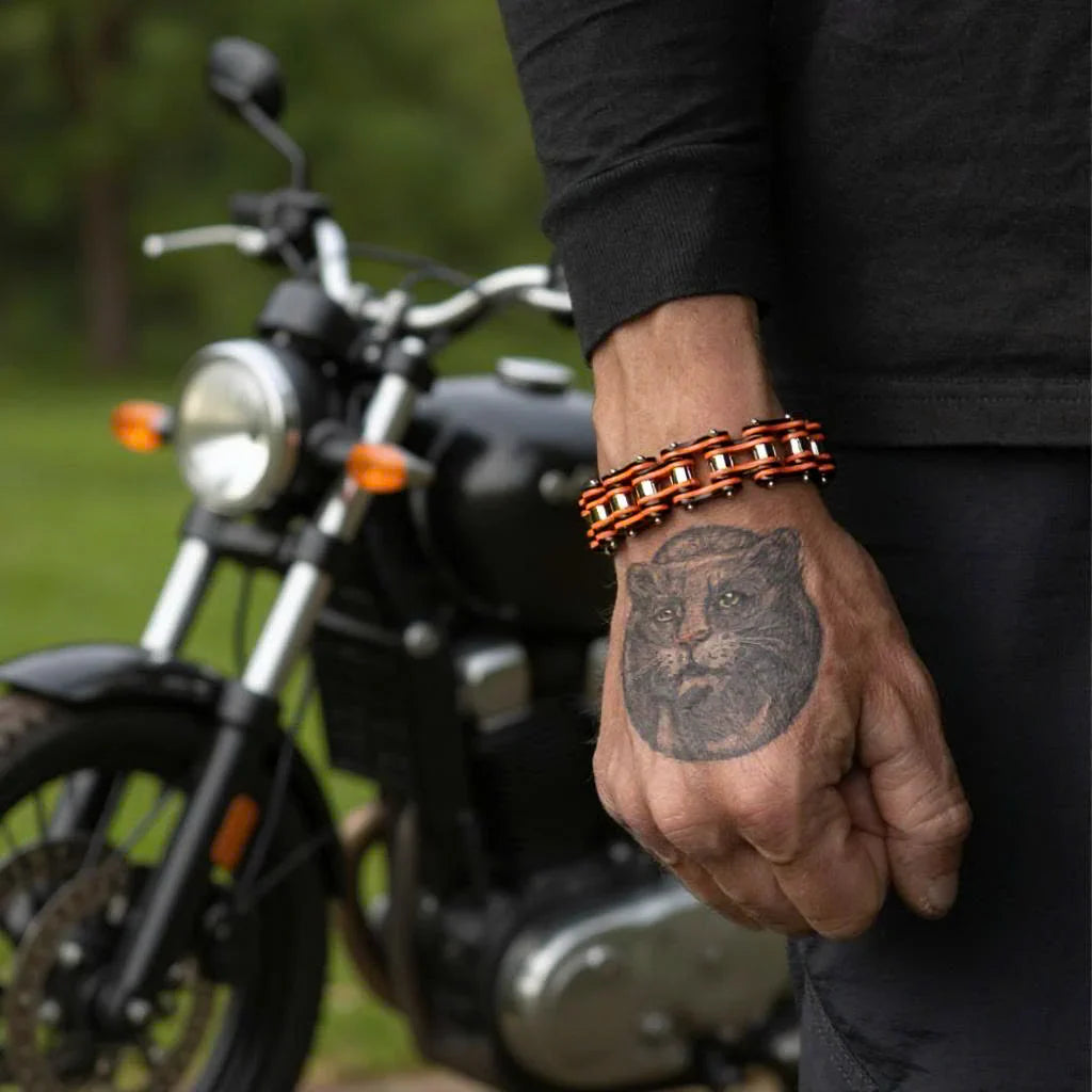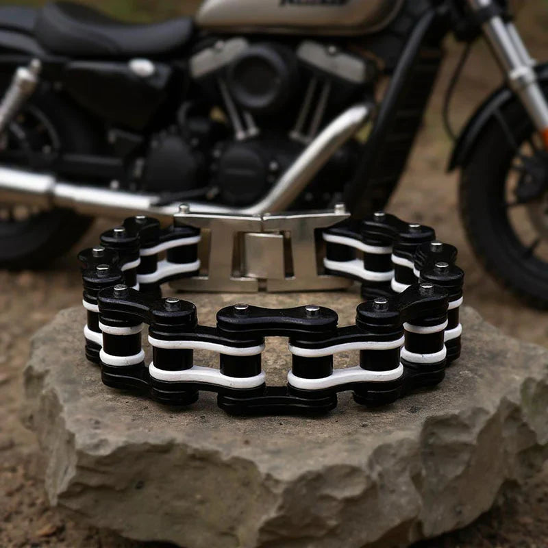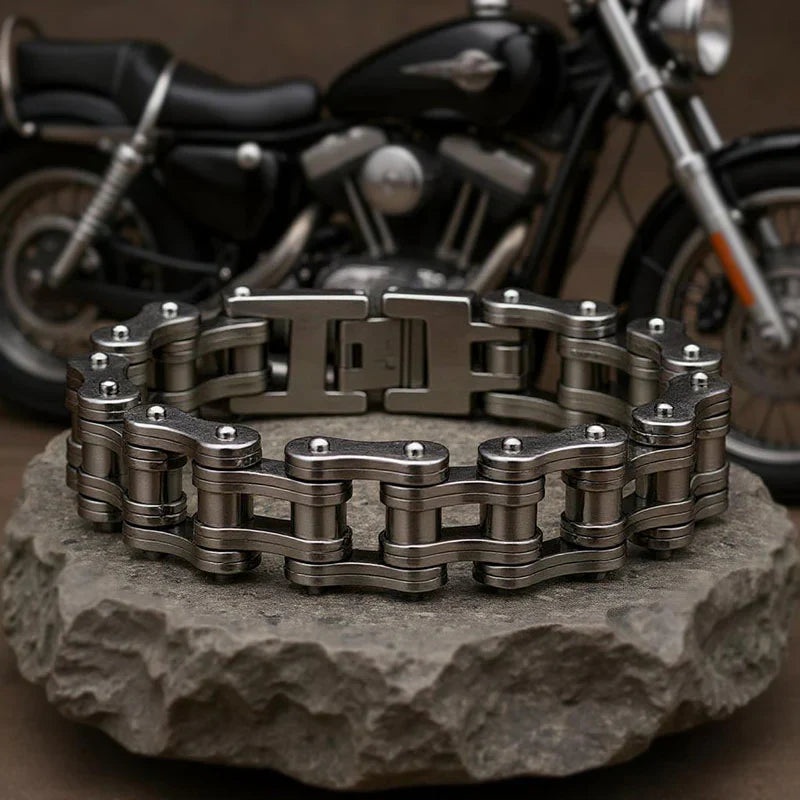 This steel motorcycle chain bracelet delivers the authentic biker aesthetic you've been wanting.