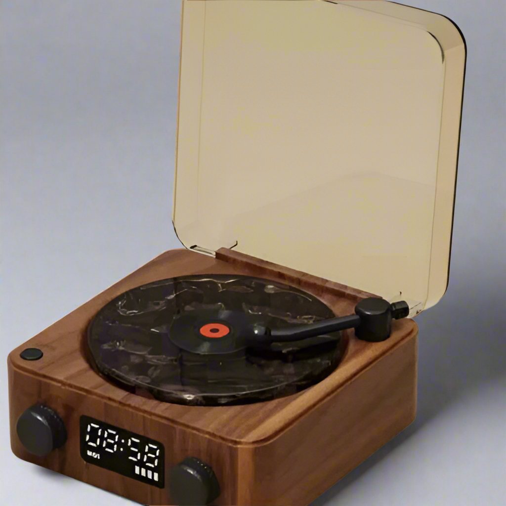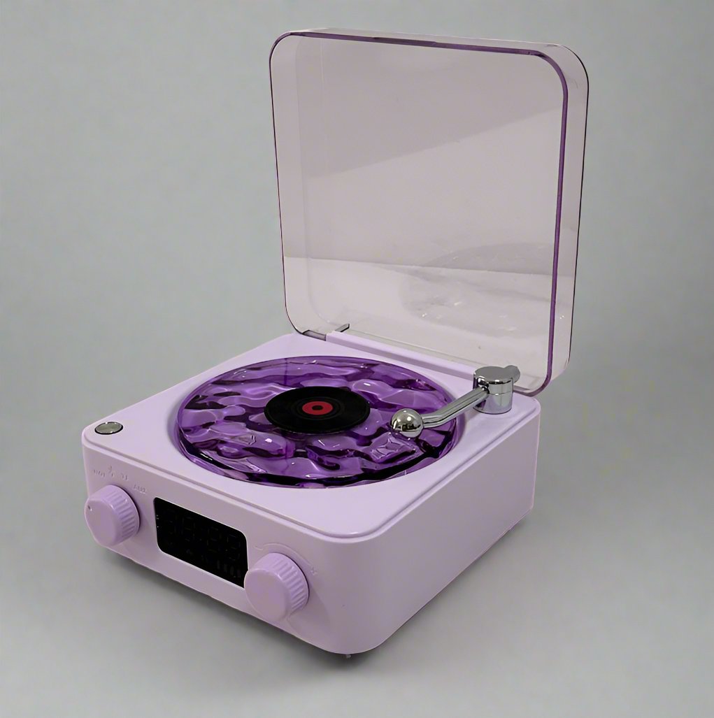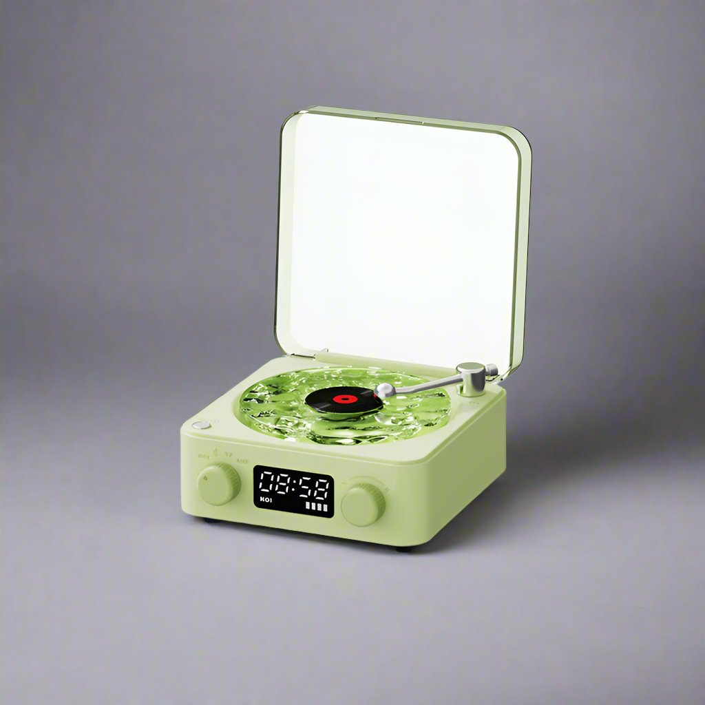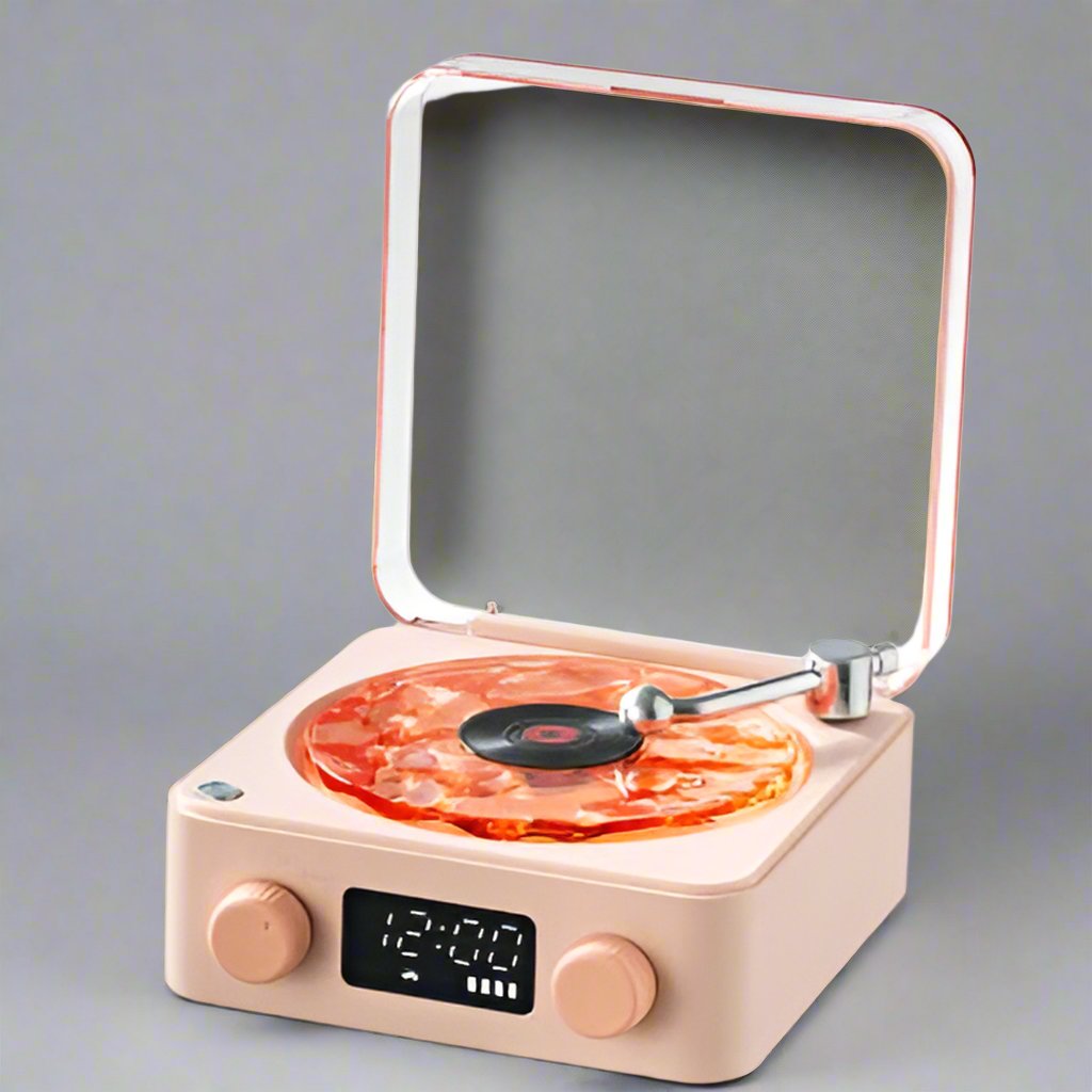 • Feel the chill vibes of vintage light waves. Our retro Bluetooth speaker syncs with your devices and can be controlled and customized to match your vibes.
