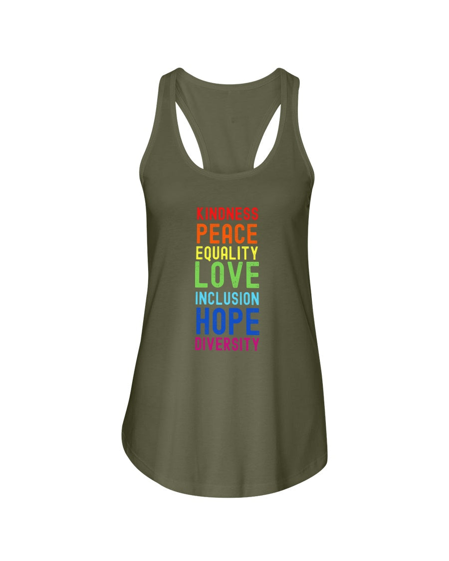 Kindness Peace Equality Love Inclusion Hope Diversity Tank top