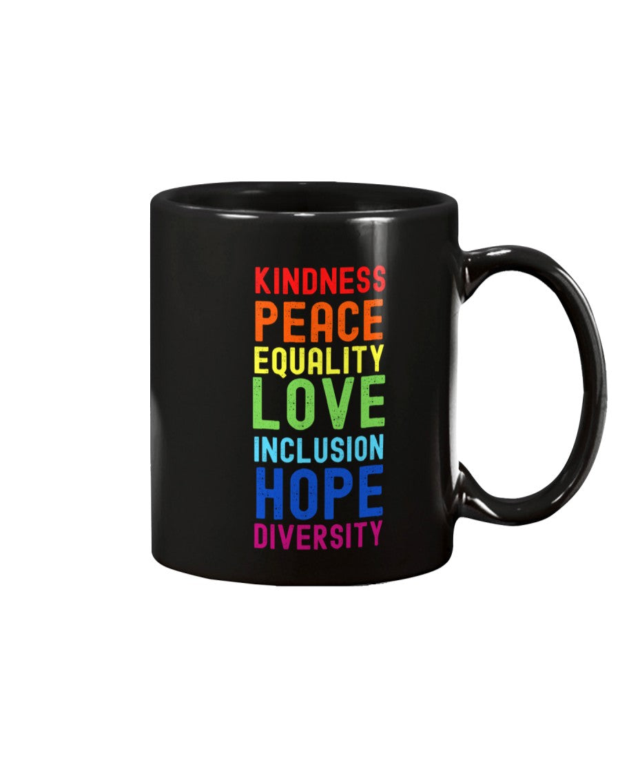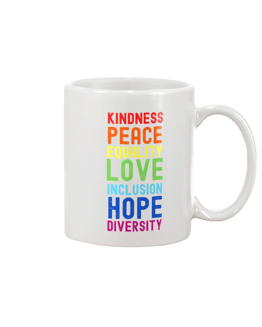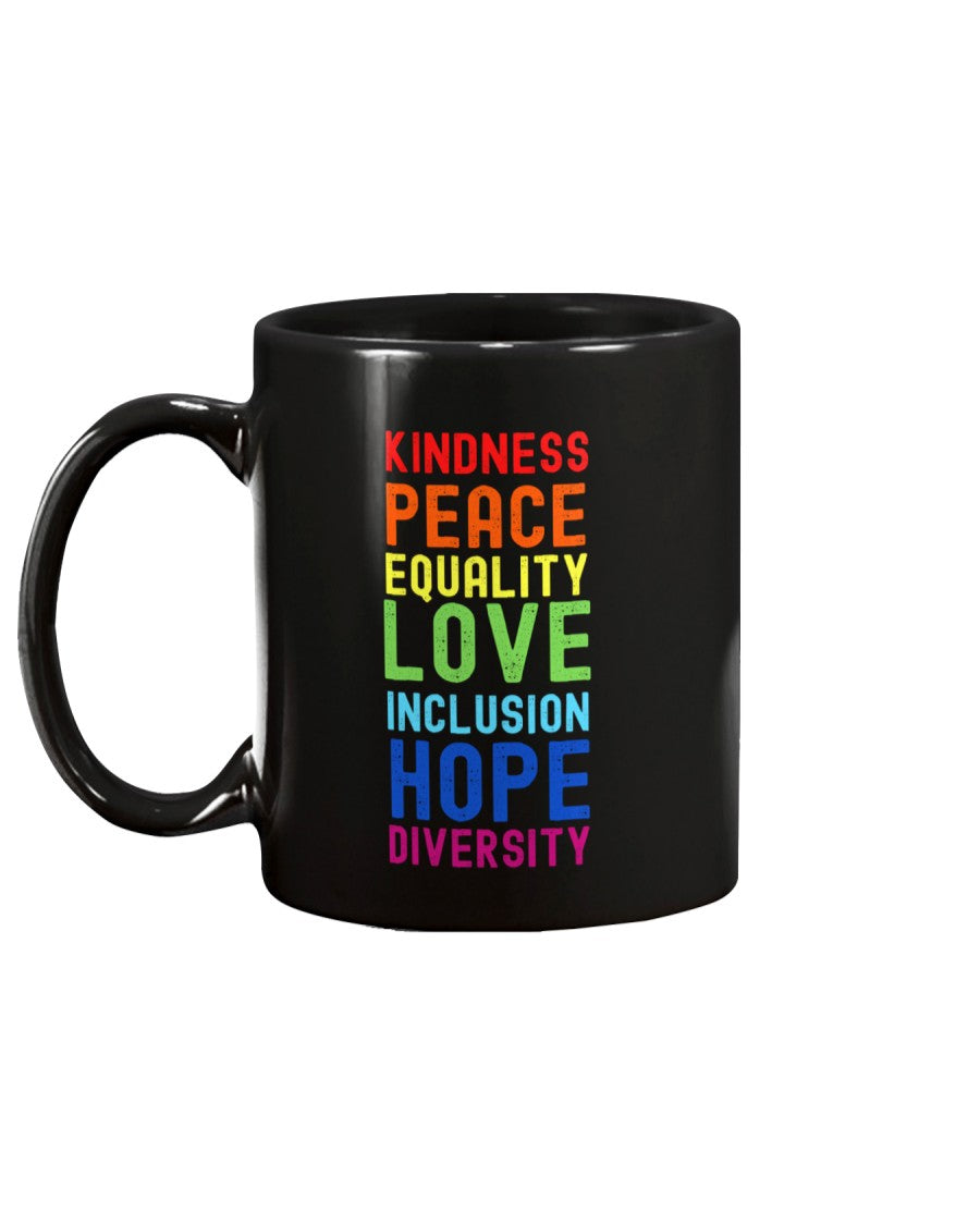 Kindness Peace Equality Love Inclusion Hope Diversity Mug