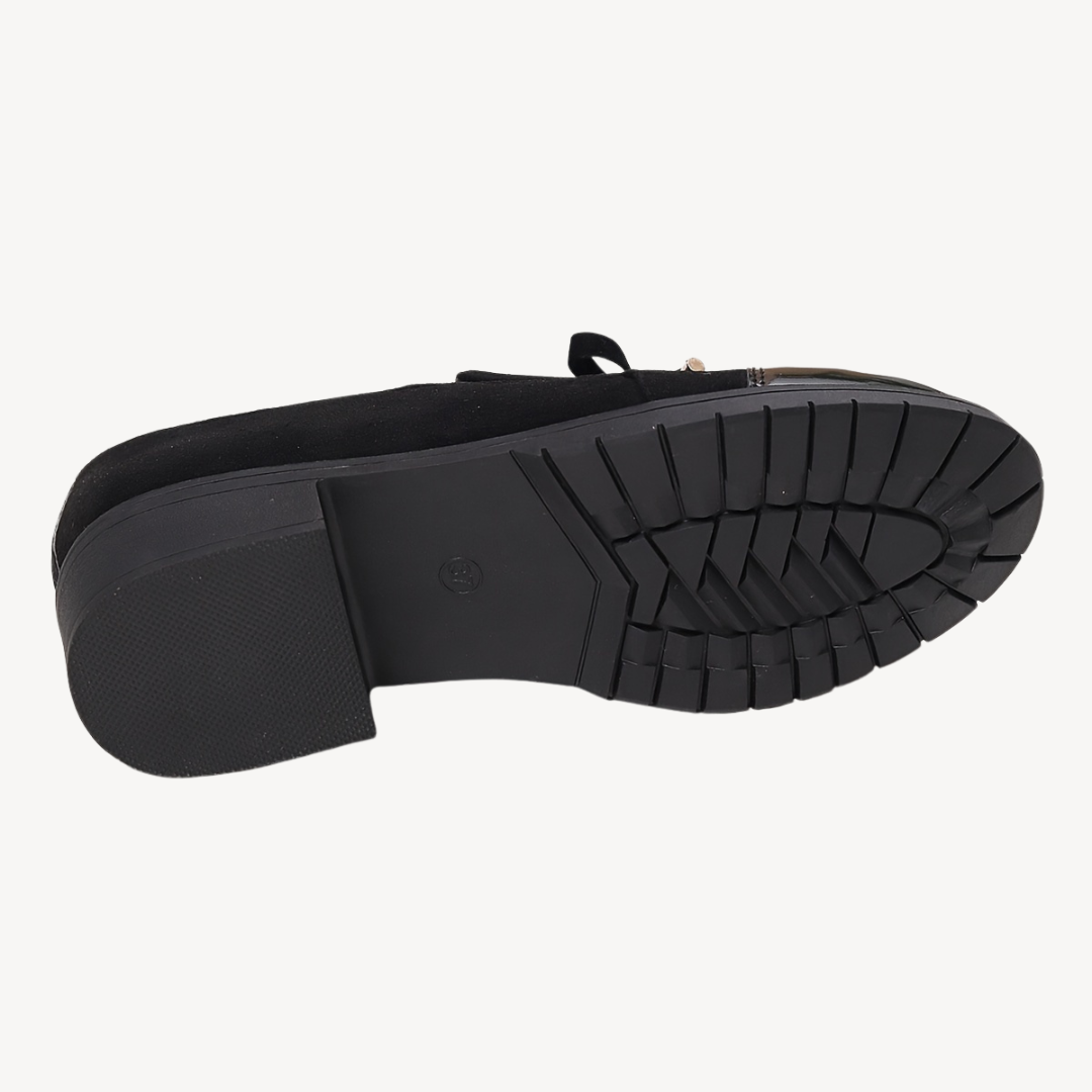 • Diese Loafer vereinen Schlichtheit und modernen Stil. Das glänzende Obermaterial und die feine Schleifendetail verleihen jedem Outfit eine gepflegte Note. Perfekt für Büro, Freizeit oder besondere Anlässe.