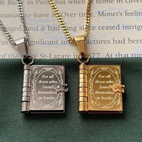 The delicate book pendant actually opens to reveal "For all those who found themselves in books," creating instant bonds with other readers who notice your necklace.