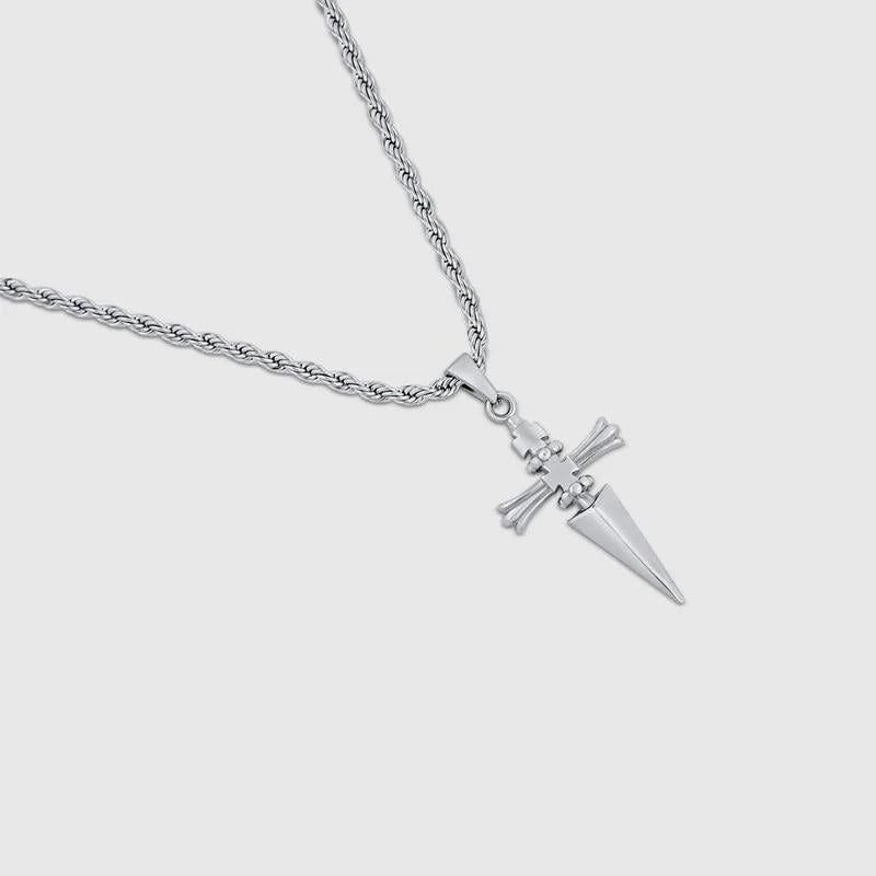 The twisted rope chain flows like liquid metal while maintaining incredible strength, and the dagger pendant gleams with the kind of finish that catches light from across the room.