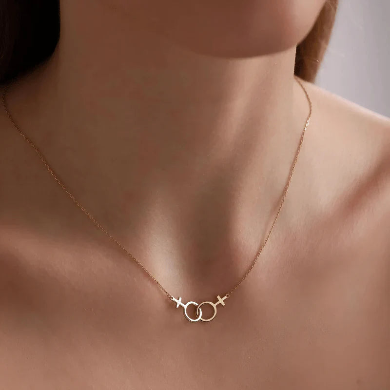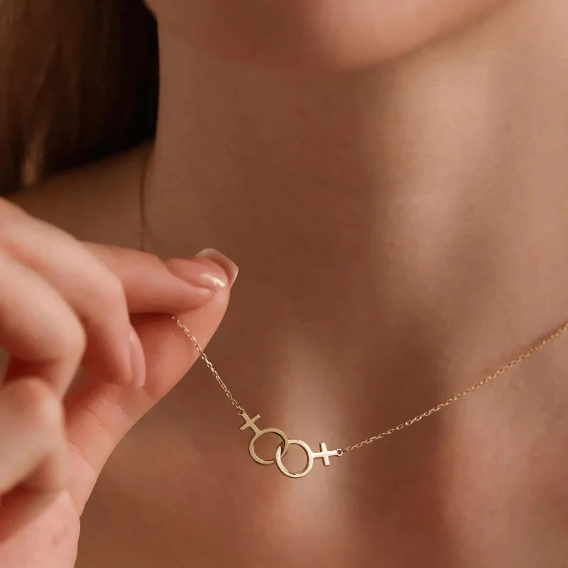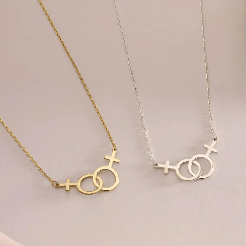 This elegant Double Venus Necklace brings together two female symbols in a beautiful design that speaks from the heart.