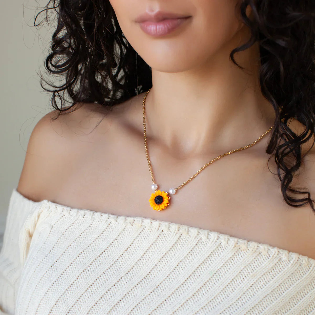 Our Sunflower Necklace adds instant personality with its realistic flower design and eye-catching golden petals.