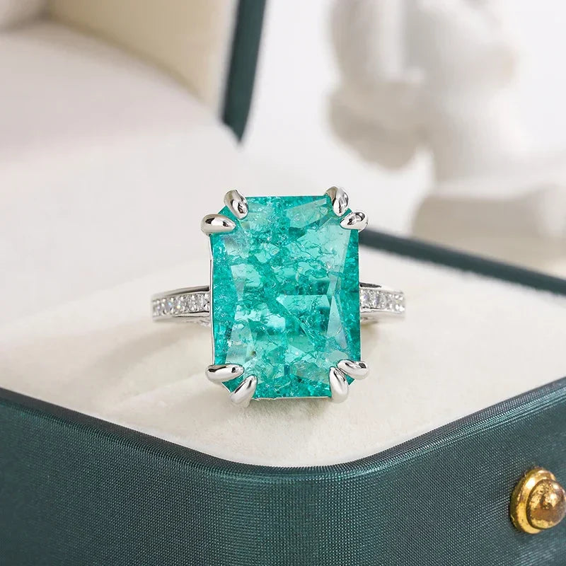 The brilliant teal zircon sparkles with flashes of blue and green, like sunlight dancing across ocean waves.