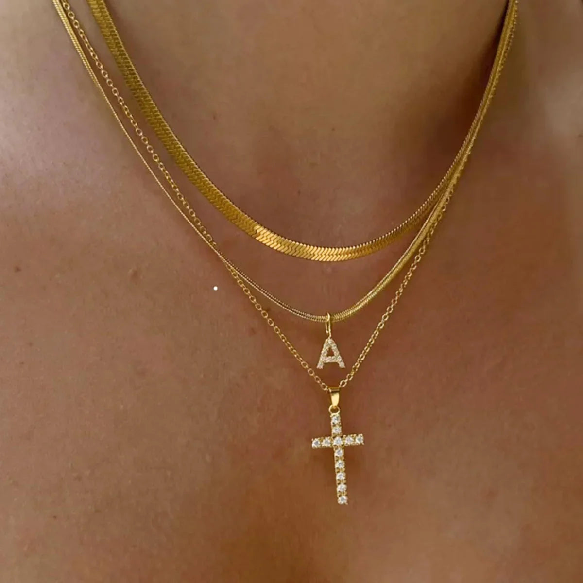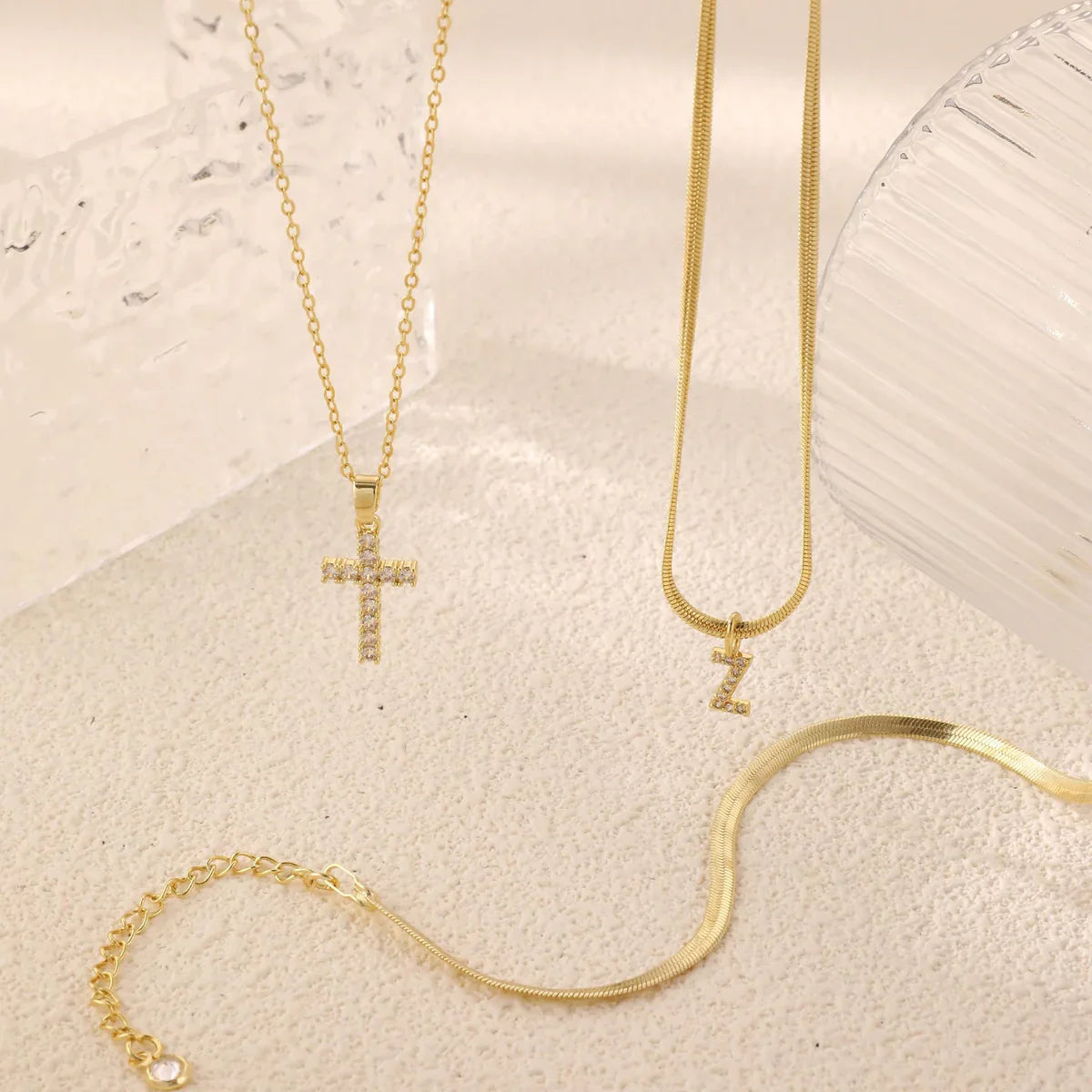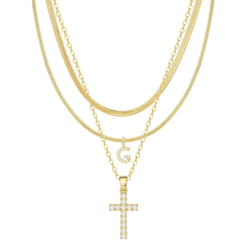 Your chosen initial becomes a diamond-accented statement piece while the cross pendant adds spiritual meaning.