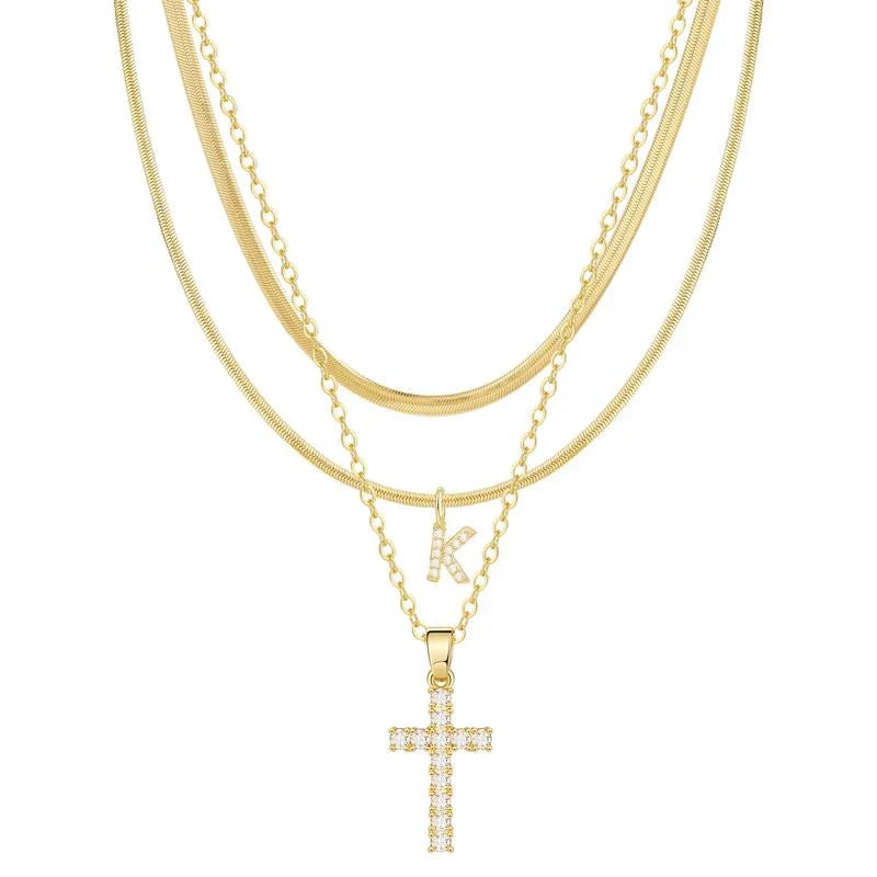 3pc 14k Diamond Accented Initial & Cross Necklace Set