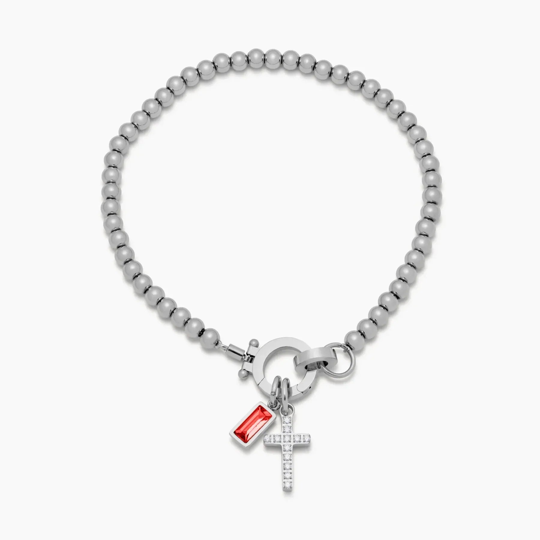 This birthstone bracelet sits gently on your wrist, carrying your personal stone and a delicate cross that reminds you of love and hope when you need it most.