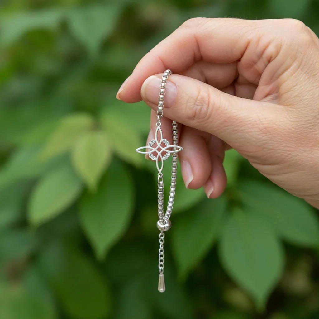 The intricate knot design catches the light beautifully while serving as your personal reminder of strength and protection.