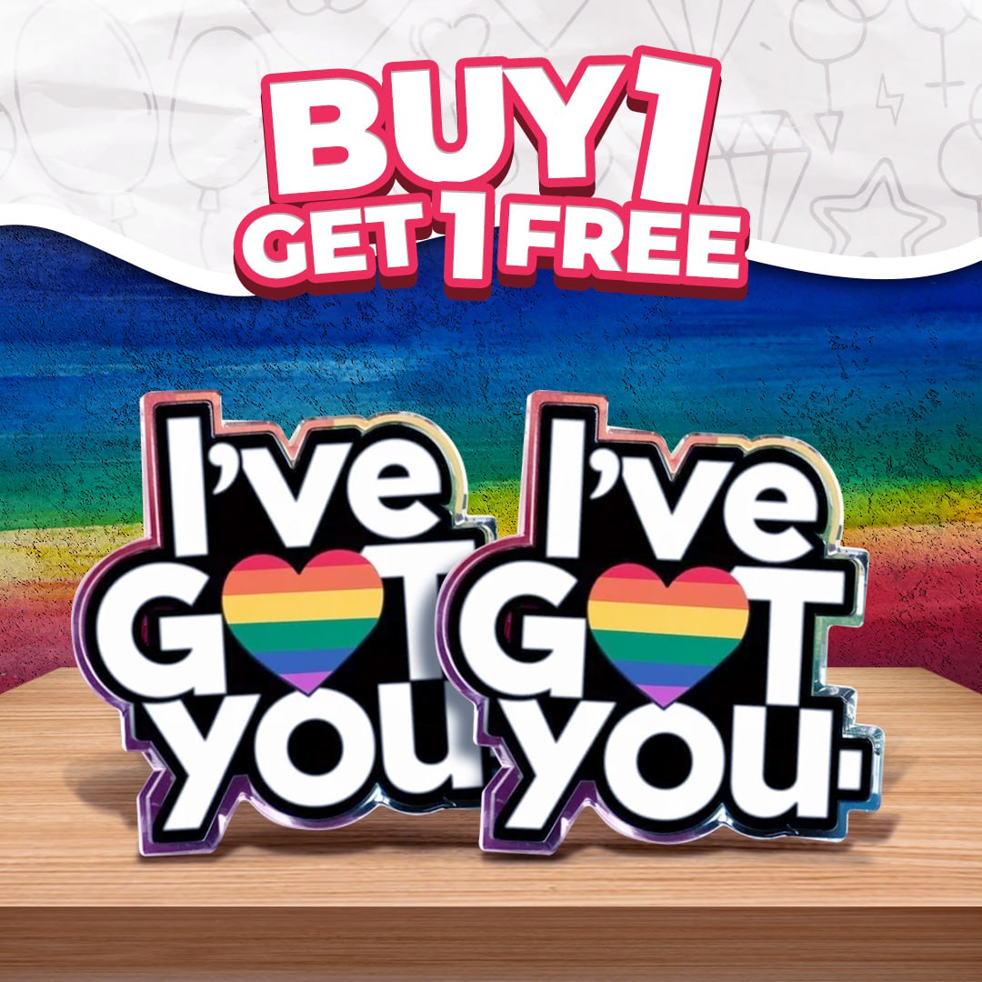 Carry a daily reminder of love, safety, and inclusion with the "I've Got You" pin. Designed to symbolize your unwavering commitment to the LGBTQ+ community, this pin is more than just an accessory—it's a statement of solidarity.