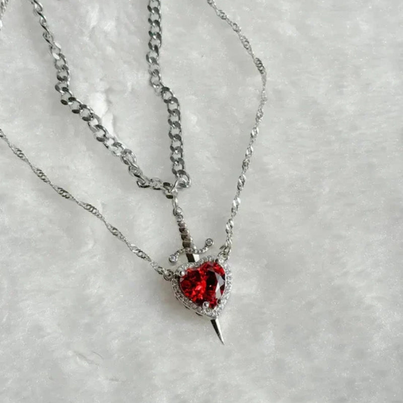 The deep red crystal heart catches light from every angle, creating a mesmerizing sparkle that makes you feel truly special.