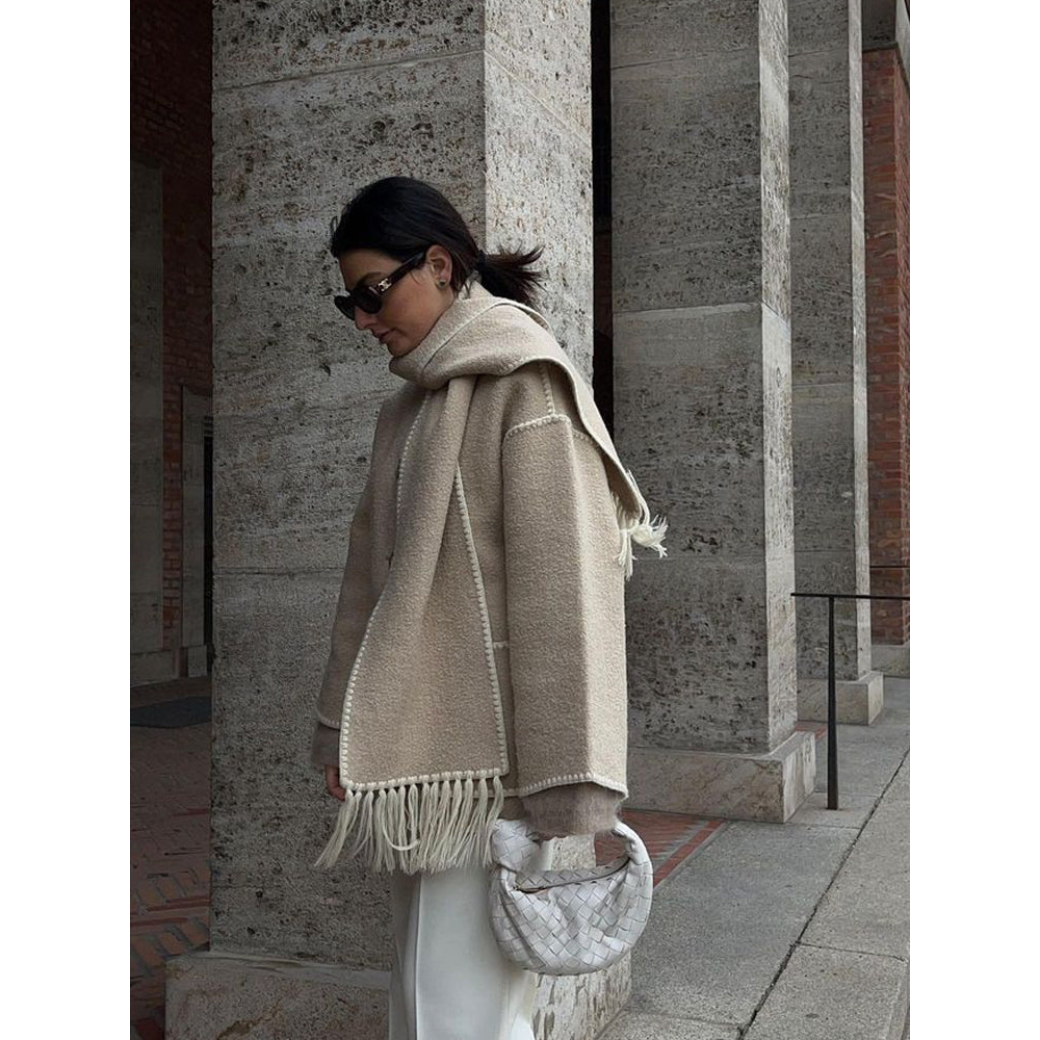 Diese Kurzjacke mit integriertem Schal bringt Stil und Funktion in Einklang. Der lockere Schnitt sorgt für Bewegungsfreiheit, während das durchdachte Stil deinem Outfit eine moderne Note verleiht. Ideal für Spaziergänge, Stadtbummel oder den Alltag in Herbst und Winter.