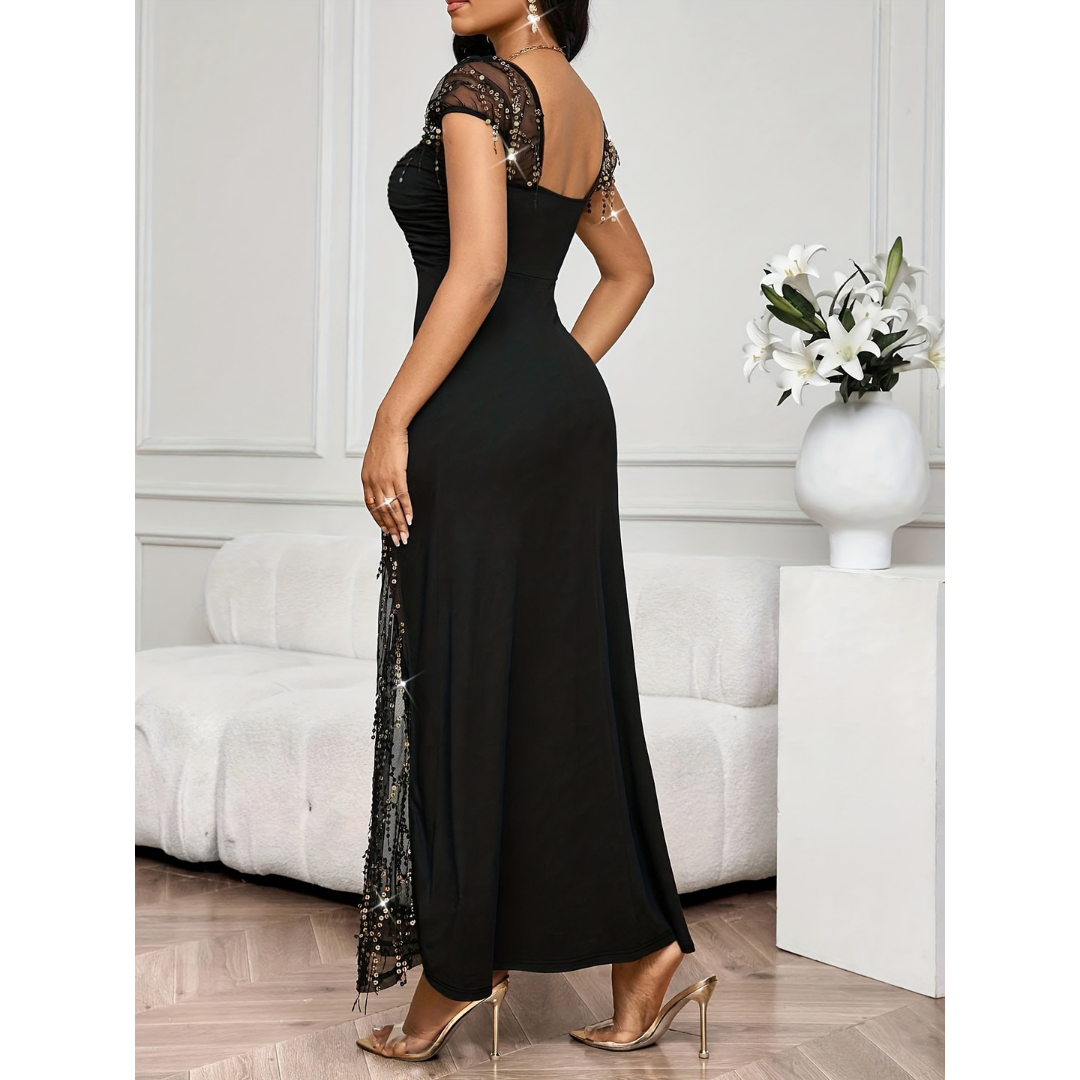 Damen Abendkleid Schwarz Lang | Pailletten & Mesh