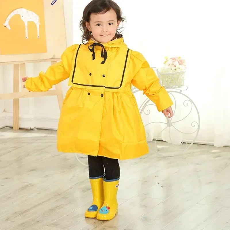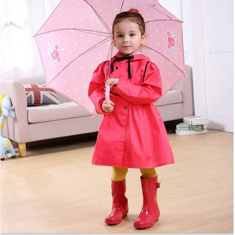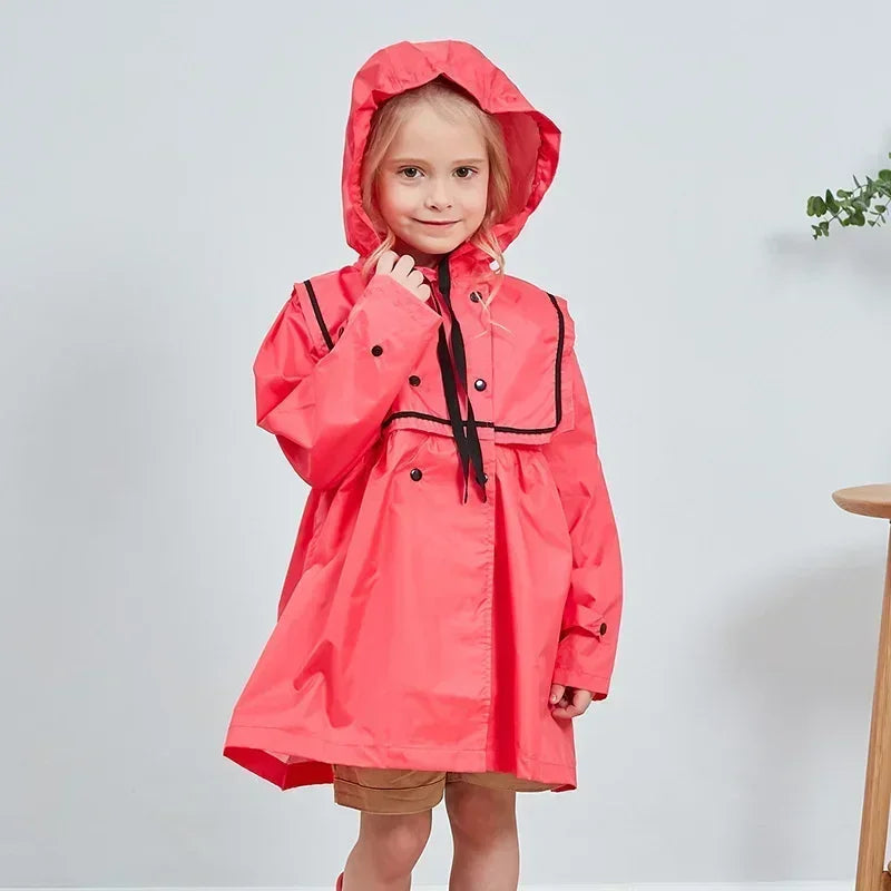 Diese Regenjacke im Prinzessinnen-Stil macht jedes Wetter zu einem Abenteuer. Mit der Kapuze und der verspielten Silhouette sind Kinder draußen immer stilvoll unterwegs. Praktisch und zugleich bezaubernd – ideal für Schule, Spielplatz oder Spaziergänge.